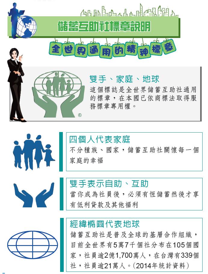 - 「雙手家庭地球」是儲蓄互助社的標誌,它所代表的意義: (2015統計資料及圖更新)