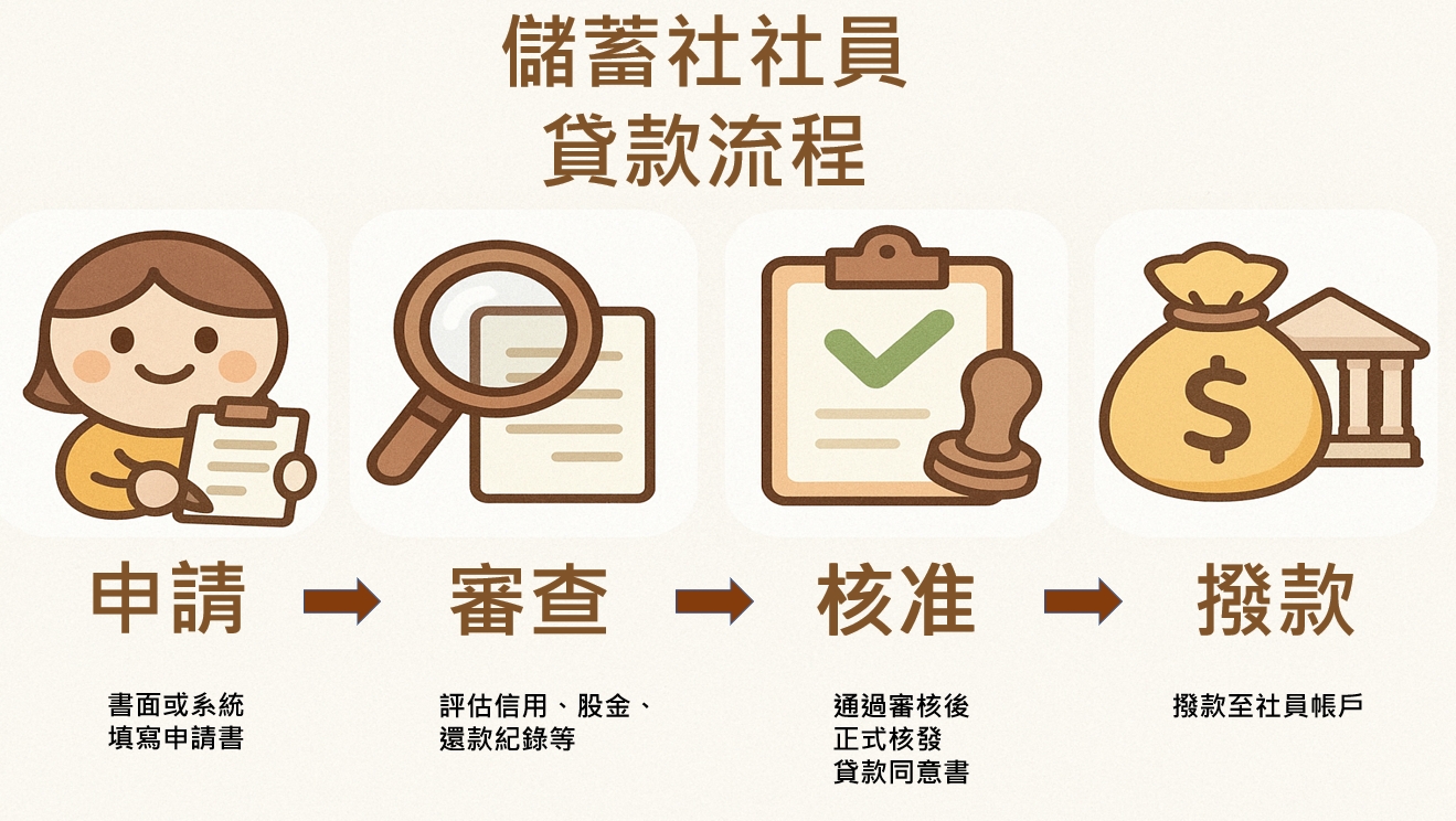 - 儲蓄互助社提供多種低息貸款服務,包括一般貸款創業貸款教育貸款等。這些貸款的利率通常低於一般銀行,且審核更具彈性,基於社員間的信任關係。